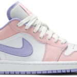 The Air Jordan 1 Low SE ‘Arctic Punch’ refreshes the classic silhouette with a delicate color scheme. The all leather upper combines a crisp white base with soft pink overlays and a lavender Nike Swoosh. The latter hue is repeated on a Jumpman icon on the tongue tag and a Wings logo embroidered on the heel. Lightweight cushioning is provided by an EVA wedge housed in the rubber cupsole . along with an encapsule Air sole unit nestled under the heel.