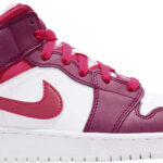 The Air Jordan 1 Mid GS ‘Rush Pink’ sneaker brings the bold design of the classic Air Jordan 1 to kids’ sizing . in a Rush Pink and ‘True Berry’ colorway. First seen on Michael Jordan during his rookie season in 1985 . the original Air Jordan 1 introduced the now-iconic Air Jordan ‘Wings’ logo . seen on the ankle strap of this kids’ iteration in Rush Pink. The shoe features a premium leather upper . breathable perforations at the toe box and an Air-Sole unit.