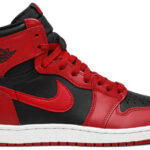 The Air Jordan 1 Retro High ’85 ‘Varsity Red’ features a recrafted build that’s true to the original release . finished in a familiar two-tone design that essentially flips the sneaker’s iconic ‘Banned’ colorway. The high-top makes use of an all leather upper . with Varsity Red overlays on a black base. Heritage details include a padded nylon tongue with Nike Air branding and a Jordan ‘Wings’ logo on the lateral collar flap.