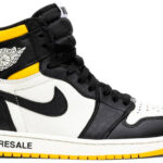 The Air Jordan 1 Retro High OG NRG ‘Not for Resale’ takes a playful stab at reseller culture . featuring a number of text-heavy embellishments on an otherwise straightforward colorway that blends Sail . black and Varsity Maize. They include ‘Not for Resale’ printed on the midsole . ‘Please Crease’ on the toe box and ‘No Photos’ embroidered across the heels of the left and right shoes.