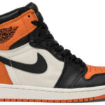 In 1985 on a Nike Europe tour . Michael Jordan shattered a backboard when throwing down a monstrous dunk while wearing an orange . black . and white uniform. Commemorating the moment and uniform . this 2015 Air Jordan 1 ‘Shattered Backboard’ (aka ‘Shattered Backboard’ 1.0) sneaker was released. Shortly after in the Fall of 2016 . an Air Jordan 1 ‘Shattered Backboard Away’ (aka ‘Reverse’ and ‘Shattered Backboard 2.0’) was released. The sneaker keeps the black laces and Nike branding . but swaps out the orange toe box and black around the toe and tongue for white.