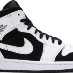 Since Michael Jordan debuted the sneaker in 1985 . Nike’s Air Jordan has been a footwear staple in shoe history. The Air Jordan 1 Retro Mid ‘Tuxedo’ sneaker looks to the past and reimagines the classic design. Released in the Fall of 2018 . the ‘Tuxedo’ colorway features a grained leather upper withsoft nubuck overlays and signature wings logo. The heel contains an Air-Sole unit that reinforces the cushioned midsole . while the rubber outsole ensures traction to prevent slippage.
