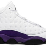 Emerging in July 2019 as part of a ‘Rivals’ series . the Air Jordan 13 Retro ‘Lakers’ sneaker looks back to the 1990-91 NBA Finals when Michael Jordan won his first championship ring against Los Angeles. This AJ13 sports a perforated leather upper with Lakers inspired colors incorporated on the heel . front-facing Jumpman and mudguard. Hints of gold appear on the outsole . between the herringbone pods.