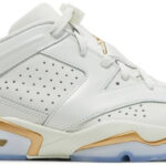 The Air Jordan 6 Low ‘Lunar New Year’ rings in the lunar holiday with a refined two-tone palette. The low-top makes use of an ivory-colored leather upper with gilded Jumpman branding hits atop the tongue and back heel. Matching metallic gold accents are applied to the spoiler-like TPU heel tab and polyurethane midsole . fitted with a visible Air-sole unit in the heel for lightweight cushioning. Underfoot . a translucent rubber outsole provides grippy traction.