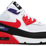First released in 1990 . the original Air Max 90 housed an even bigger visible Max Air unit than its predecessor. The beloved retro silhouette lives on in the Nike Air Max 90 Essential ‘Raptors’ sneaker in homage to the Toronto B-ball team as they approach the 2019 NBA finals. Rendered in white . Red Orbit . Psychic Purple and black . the shoe takes on a color-blocked look by alternating leather . mesh and synthetic materials. Full-length foam combines with a Max Air unit for cushioning while a Waffle rubber outsole provides durable traction.