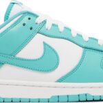 The Nike Dunk Low ‘Clear Jade’ makes use of a smooth leather upper . featuring a pristine white base with emerald green overlays and a color-matched Swoosh. A woven Nike tag decorates the breathable nylon tongue . while an embroidered Nike wordmark graces the back tab. The sneaker rests on a durable rubber cupsole . fitted with an interior foam wedge for lightweight cushioning.
