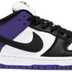 The Nike Dunk Low SB ‘Court Purple’ delivers a straightforward colorway of the classic silhouette . redolent of the brand’s pink and silver box eras. The low-top makes use of a white leather upper with contrasting black overlays on the forefoot . eyestay and collar. A heel overlay in Court Purple is matched by the rubber outsole . featuring a grippy traction pattern originally designed for the hardwood. Zoom Air cushioning in the sockliner combines with a stuffed tongue to provide enhanced comfort.