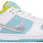 The FTC x Nike Dunk Low SB ‘Lagoon Pulse’ is drawn from a collaborative series celebrating the 2021 Summer Olympics in Tokyo . where skateboarding makes its debut as an official Olympic sport. FTC . the San Francisco skate shop located in the city’s historic Haight district . dresses the low-top in light blue suede with white leather overlays in a brick-like texture inspired by Japanese bathhouses. A metallic silver Swoosh shines on the side panel . while ‘FTC’ adorns the yellow leather heel tab in light blue embroidery. Underfoot . an icy translucent outsole provides durable traction.