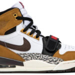 Don C’s Jordan Legacy 312 ‘Rookie of the Year’ borrows the tones from a classic Jordan 1 colorway . featuring a combination of Wheat and brown suedes with white leather paneling throughout the design. The silhouette’s shape borrows from classic Nike and Jordan styles . including the Jordan 1 . the Jordan 3 and the Nike Air Alpha Force.