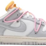 This Off-White x Nike Dunk Low is taken from the ‘Dear Summer’ collection . a sprawling follow-up to Virgil Abloh’s first Nike Dunk collaboration from 2019. The low-top makes use of a white leather upper with soft grey canvas overlays . along with Virgil Abloh’s calling-card flourishes . which include a plastic zip tie and printed Helvetica text.