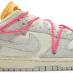 This Off-White x Nike Dunk Low is taken from the ‘Dear Summer’ collection . a sprawling follow-up to Virgil Abloh’s first Nike Dunk collaboration from 2019. The low-top makes use of a white leather upper with soft grey suede overlays . along with Virgil Abloh’s calling-card flourishes . which include a plastic zip tie and printed Helvetica text.