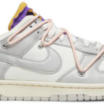 This Off-White x Nike Dunk Low is taken from the ‘Dear Summer’ collection . a sprawling follow-up to Virgil Abloh’s first Nike Dunk collaboration from 2019. The low-top makes use of a white leather upper with soft grey canvas overlays . along with Virgil Abloh’s calling-card flourishes . which include a plastic zip tie and printed Helvetica text.