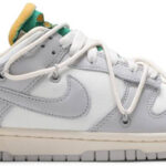 This Off-White x Nike Dunk Low is taken from the ‘Dear Summer’ collection . a sprawling follow-up to Virgil Abloh’s first Nike Dunk collaboration from 2019. The low-top makes use of a white leather upper with soft grey canvas overlays . along with Virgil Abloh’s calling-card flourishes . which include a plastic zip tie and printed Helvetica text.
