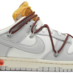 This Off-White x Nike Dunk Low is taken from the ‘Dear Summer’ collection . a sprawling follow-up to Virgil Abloh’s first Nike Dunk collaboration from 2019. The low-top makes use of a white leather upper with soft grey canvas overlays . along with Virgil Abloh’s calling-card flourishes . which include a plastic zip tie and printed Helvetica text.