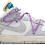 This Off-White x Nike Dunk Low is taken from the ‘Dear Summer’ collection . a sprawling follow-up to Virgil Abloh’s first Nike Dunk collaboration from 2019. The low-top makes use of a white leather upper with soft grey canvas overlays . along with Virgil Abloh’s calling-card flourishes . which include a plastic zip tie and printed Helvetica text.