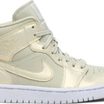 The Nike Wmns Air Jordan 1 Mid brings a wave of nostalgia in a fashion-forward visage distilled with narrative iconography. Delivered in October 2019 . this women’s makeover drapes the patent leather profile . Swooshes and Wings logo in a pale Lemon Yellow hue. Jumpman branding to the tongue and insole offers a touch of contrast. The upper is offset by a white rubber cupsole infused with Air cushioning.