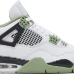 The Women’s Air Jordan 4 Retro ’Seafoam’ combines OG-inspired color blocking . reminiscent of the original ‘Fire Red’ release from 1989 . with classic materials and refreshed pastel accents. The upper is constructed from smooth white leather with contrasting pops of Oil Green on the eyelets . interior lining . and the Jumpman branding hits that adorn the Flight tongue tag and molded heel tab. Legacy details are left intact . including the quarter panel netting and support wings. The classic silhouette rides atop a polyurethane midsole . featuring a visible Air-sole unit in the heel and a final splash of green throughout the forefoot.