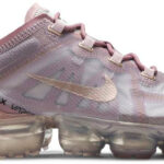 Released in January 2019 . the Nike Wmns Air VaporMax 2019 ‘Soft Pink’ sneaker is dressed in a dusty lavender hue with updated VaporMax cushioning. Styled for women . this shoe features a translucent upper made from stretch woven material with modified branding details throughout. A metallic bronze Swoosh adorns the quarter panel . while VaporMax logos trim the heel counter. An icy VaporMax sole unit completes the look . for a running shoe that’s street-style ready.